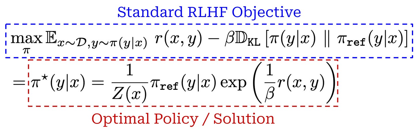 that actually maximizes the RLHF objective shown below!