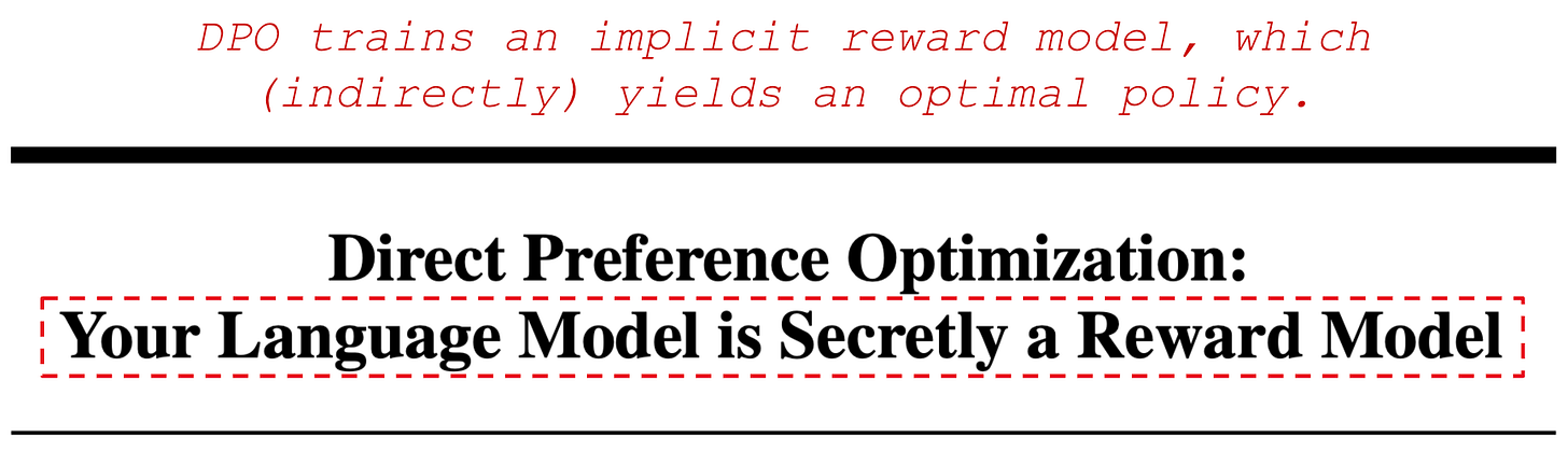 “What is often misunderstood is that DPO is learning a reward model at its core, hence the subtitle of the paper Your Language Model is Secretly a Reward Model. It is easy to confuse this with the DPO objective training a policy directly” - RLHF book
