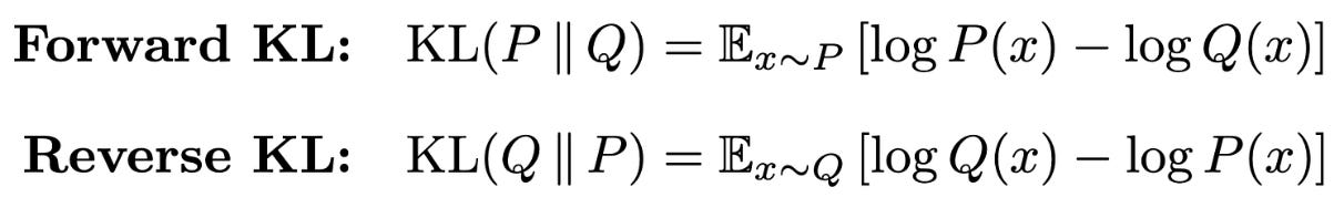 I didn't know about the forward and reverse KL divergences and https://huggingface.co/blog/NormalUhr/kl-divergence-estimator-rl-llm was also very interesting, thank you for the link!