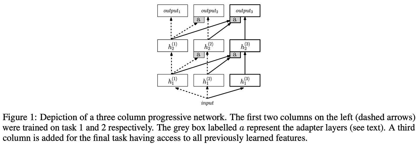 [24] Rusu, Andrei A., et al. “Progressive neural networks.” arXiv preprint arXiv:1606.04671 (2016).