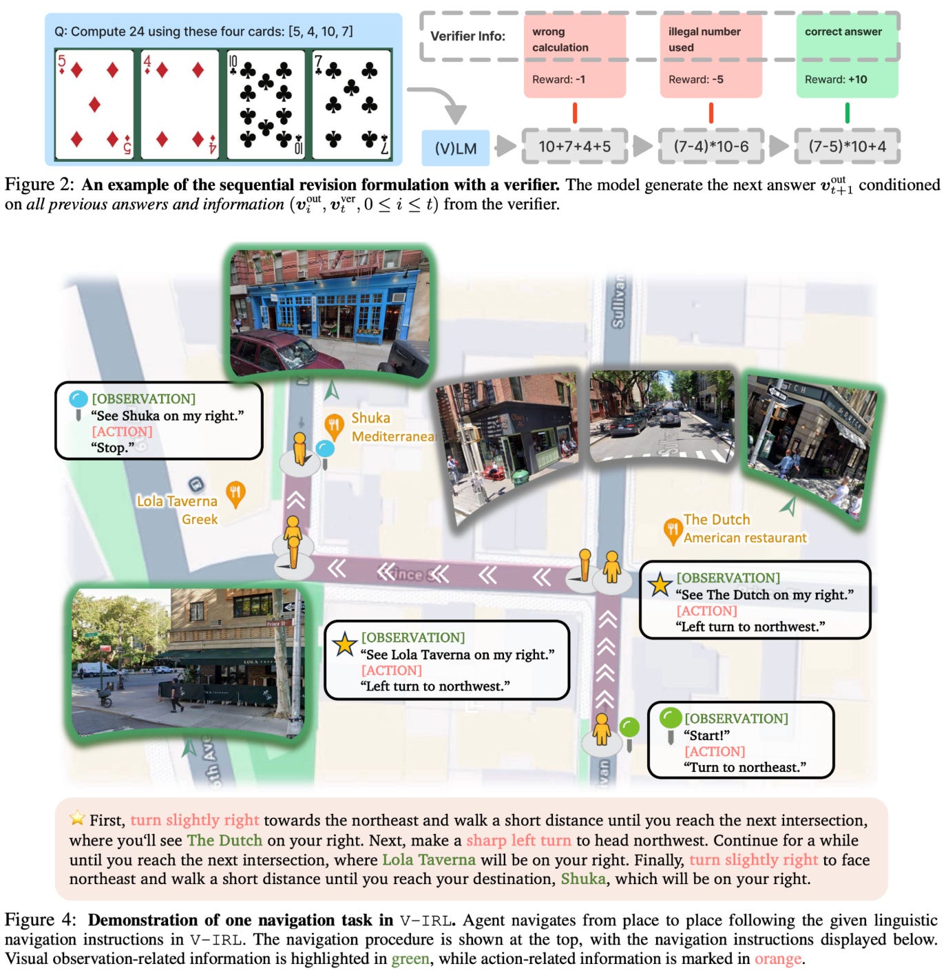 V-IRL: A navigation task that has the model reach a destination using visual landmarks and spatial reasoning. We can test generalization by varying the available action space or visual context.