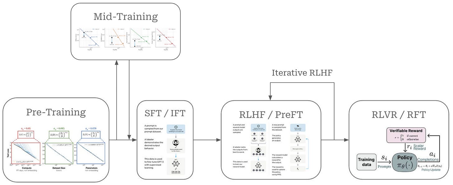 “[We demonstrate] that RL synthesizes novel reasoning strategies and enables robust zero-shot generalization when LLMs are first pre-trained on foundational atomic reasoning skills via Supervised Fine-Tuning.” - from [8]